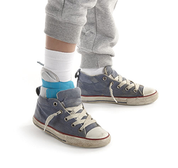 - 甲回り23~27cm(靴サイズ20~23.5cm)の小児(または小さい甲回りの成人)が対象の足関節サポーターです。